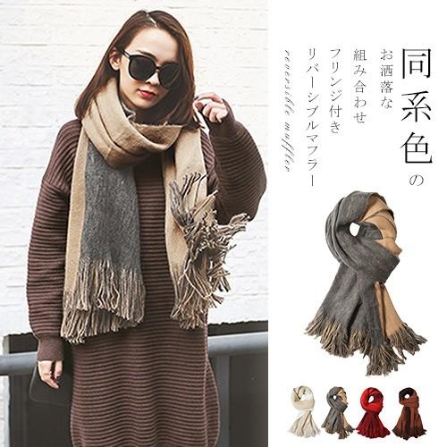 リバーシブル 両面 裏表色違い ストール マフラー 大判サイズ フリンジ 肩かけ 膝かけ ブランケット 防寒 レディース 21as0939 多多 通販 Yahoo ショッピング
